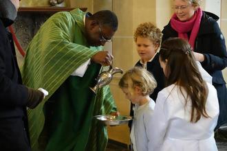 Am Sonntag, 4. Februar wurden im Gottesdienst um 11.00 Uhr zwei Erstkomnunionkinder und ein Geschwisterkind getauft. Mia Mariella Schmidt, Julius Kian Ravati und seine Schwester Leonie wurde durch Pfarrer Kita das Sakrament der Taufe gespendet. Dies war für alle Gottesdienstbesucher:innen, insbesondere für die Familien und die Kinder, ein ganz besonderer Moment.