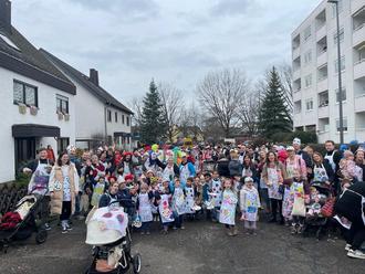 Ein großartiges Bild lieferten die Maler der ev. Kita Allerheiligenberg, die in einer imposante Gruppe mit mehr als 100 Kindern, Eltern und pädagogische Fachkräfte durch die Gassen von Lahnstein zogen.