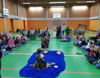 Zu Beginn des neuen Halbjahres war die Kinderoper „Papageno“ aus Wien in der Schule zu Gast und hatte das musikalische Märchen „Peter und der Wolf“ von Sergej Prokofjew im Gepäck. Den beiden Ensemblemitgliedern gelang es sofort, die Kinder für die Geschichte von Peter, dem brummeligen Großvater, seinen Tierfreunden und dem hungrigen Wolf zu begeistern und ihnen die einzelnen Instrumente des Orchesters auf unterhaltsame Weise näherzubringen.