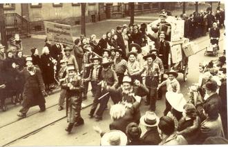 Fußgruppe bei einer Kappenfahrt in den 1930er Jahren. Im Hintergrund das Amtsgericht. (Fotos: Sammlung Stadtarchiv Lahnstein)