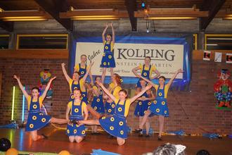 Mathe-Musikus Elmar Schmitz und Vorsitzender Markus Schild moderierten als „Zweier-Rat“ den vergnüglichen und abwechslungsreichen Abend. Ulrich Schneider sorgte für die Regie und hinter den Kulissen kümmerten sich gut 20 Kolping-Mitglieder um das leibliche Wohl, von Küche über Sektbar bis zur Theke, an welcher sich Schlangen bildeten. „So viel Fässer haben wir wirklich selten gezapft“, stellten Peter Stein und Mario Kriechel fest. Einen violetten Farbtupfer setzte zu Beginn die Tanzgarde Fachbach. Die Tanzmäuse der Kolpingfamilie Nievern-Fachbach-Miellen entführten in Tausend und eine Nacht und zu Aladin. „Musik ist Trumpf“ meinte die Mehrgenerationen-Tanzgruppe „Family and Friends“ aus den Reihen des NCV. Die Jeckenschar sang beliebte Schlager-Gassenhauer tüchtig mit, während die silber-glänzenden Showtänzerinnen und -tänzer Pyramiden bauten. Sophie Unkelbach sorgte einmal mehr für die tolle Choreografie. Zum Einmarsch hatten die Tänzer und Tänzerinnen Langspielplatten mitgebracht, ein Relikt vergangener, aber schöner Zeiten. Die Juniorentanzgarde der Närrischen Turmgarde Lahnstein hatte sich kölschen Tön verschrieben und sorgte so für viel Stimmung.