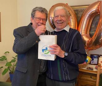 Auch die Stadt Lahnstein ließ es sich nicht nehmen, Adi Müller zu ehren. Im Namen von Oberbürgermeister Lennart Siefert und Landrat Jörg Denninghoff überbrachte der Beigeordnete Manfred Radermacher die Glück- und Segenswünsche sowie ein Präsent. Die Würdigung und die zahlreichen Gratulationen nahm der Jubilar sichtlich mit Freude an.