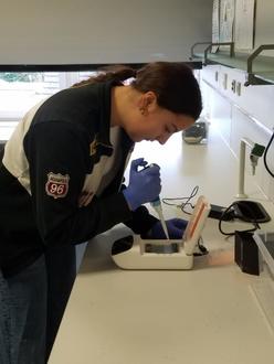 Einfüllen der DNA-Proben in das Elektrophorese-Gel. (Fotos: Katrin Dietze / MDG)