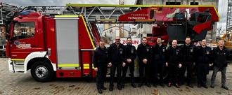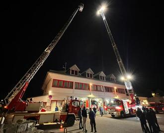 Hoch hinaus ging es direkt nach der Ankunft. Mit einer Nennrettungshöhe von 23 Metern bietet die neue Leiter deutlich bessere Möglichkeiten für die Hilfs- und Rettungsarbeiten der Feuerwehr im Blauen Ländchen.