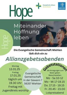 Liebe Frau Heymann, ich weiß, ich bin sehr spät. Aber vielleicht ist es noch möglich, diesen Flyer für die Allianzgebetsabende in das kommende Mitteilungsblatt zu setzen. Liebe Grüße Karl Otto Naujoks Bergstraße 16, 56357 Miehlen.
