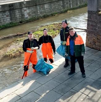 Wie auch in den letzten Jahren widmeten wir uns bei idealem Wetter dem Mühlbach und sammelten alles was nicht ins Gewässer gehörte wie Glasflaschen, Dosen, diverses Plastik, Styropor usw. ein.