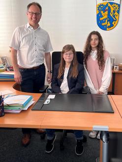 „Der Girls‘ Day ist eine tolle Initiative, in der die Mädchen die Möglichkeit erhalten, in Berufe hinein zu schnuppern, die oftmals männlich dominiert gelten. An diesem Tag konnten Maya Englert und Lena Röhrig mir Fragen stellen und Erfahrungen sammeln. Gerne nehme ich mir die Zeit für unsere heranwachsende Jugend. Es ist unsere Generation von Morgen,“ so Bürgermeister Güllering.