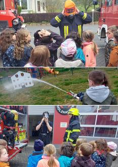 Am zweiten Tag betrachteten sich die Vorschulkinder die nahgelegene Feuerwehr genauer. Kameraden der Freiwilligen Feuerwehr erklärten den Kindern die Autos, zeigten die Räumlichkeiten der Feuerwehr und der Jugendfeuerwehr und erklärten ein paar Geräte. Auch wurde gezeigt, wie es sich anhört, wenn ein Feuerwehrangehöriger das Atemschutzgeräte aufgesetzt hat. Es zischt und man kann ihn nicht so gut verstehen. Angst hatte aber keines der Kinder; und das ist auch gut so.