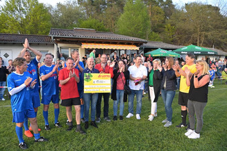 Bei bestem Kaiserwetter und sonnigen 22° erlebten 1.020 Zuschauer einen tollen Nachmittag, bei dem die stolze Spendensumme von 19.000 € erreicht werden konnte. Ehemalige Meister und Weltmeister sehen und dabei noch Gutes tun, konnten die Zuschauer in Miehlen. Beim Benefizspiel für Sven Heidecker aus Buch, langjähriger Jugendbetreuer und Trainer der JSG Oelsberg, zeigte der Fußball erneut, wie groß der Zusammenhalt doch sein kann. Der komplette Erlös der Veranstaltung ging zu Gunsten der Familie Heidecker, die immense Kosten für die Pflege aufbringen muss. Die Lotto-Elf Rheinland-Pfalz, gecoacht vom 1. FCK-Urgestein Hans-Peter Briegel und auf dem Feld angeführt von Weltmeister Guido Buchwald steht für solche Anlässe gerne bereit. Gegner der Lotto-Elf war eine Ü-40-Auswahl der VG Nastätten. Beim Outfit stand die Auswahl den ehemaligen Profis in nichts nach und ebenfalls professionell da: Thorsten Michel, Svens ehemaliger Chef und großer Unterstützer und Helfer der Familie sponserte die Elf mit neuen Trikots. Auch wenn das Ergebnis zweitrangig ist, bei den acht Toren zeigten beide Teams schöne Spielzüge und tolle Tore. Im ersten Abschnitt war der „Spieler des Spiels“, Keeper Markus Brand nur durch ein Weltmeister bezwungen werden: Guido Buchwald konnte zum zwischenzeitlichen 1:1 ausgleichen. Jeder Cent ist wertvoll und zeigt wie groß die Hilfsbereitschaft ist. Dies attestierte auch VG-Bürgermeister und Schirmherr Jens Güllering. Die Spendenbereitschaft von privaten Personen und Sponsoren, sowie auch die unentgeltliche Arbeiten des Schiedsrichtergespanns um Marcel Gasteier, Rainer Allmeroth und Jason Schiller, sowie der vier fleißigen Ehrenämtler des DRK-Ortsverein Nastätten zeugten von großem Zusammenhalt.