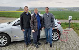 Auf Hof Meisenheck gehen für Maik Holstein Landwirtschaft und erneuerbare Energien Hand in Hand. Direkt neben seiner Biogasanlage stellt er Parkplätze mit eigener E-Ladesäule öffentlich zur Verfügung. Die neue Ladesäule wurde am 23. April von Bürgermeister Jens Güllering und der Klimaschutzmanagerin der Verbandsgemeinde, Johanna Liebl, mit dem neuen E-Fahrzeug der Verbandsgemeindeverwaltung als ersten Lade-Kunden eingeweiht.