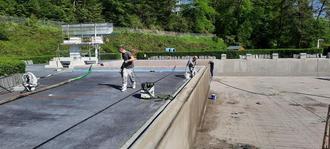 Witterungsabhängige Arbeiten wirken sich auf den Zeitpunkt der Eröffnung aus. Den die meisten Arbeiten können nur bei einer trockenen Witterung und bei einer bestimmten Mindesttemperatur verrichtet werden. Derzeit werden Putz,- Spachtel- und Schleifarbeiten an dem Schwimmbecken durchgeführt.
