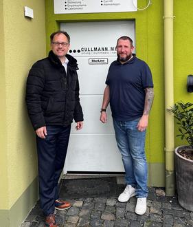 Geschäftsführer Andreas Cullmann und Bürgermeister Jens Güllering im Gespräch (von rechts)
