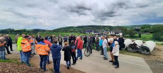 Fachleute des LBM Diez und der Verbandsgemeindewerke informierten rund fünfzig Besucher über den aktuellen Baufortschritt der neuen Umgehungsstraße.