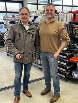 Gesellschafter und Geschäftsführer Heiko Zöller im Gespräch mit Bürgermeister Jens Güllering in den neuen Geschäftsräumen in Miehlen.