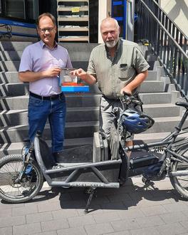 Im Aktionszeitraum von 21 Tagen wird Förster Martin Janner mit seinem einzig genutzten E-Lastenbike von der Verbandsgemeinde Nastätten medienwirksam begleitet.