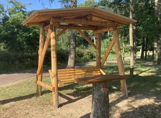 Direkt am Sportplatz, in der Nähe unserer Grillhütte, steht eine Schaukelbank, von der aus man einen wunderbaren Blick auf unser schönes Dörfchen hat. Diese Bank wurde von Norbert Haxel, mit Unterstützung seines Bruders Dietmar Haxel gebaut. Dies ist nicht das erste Bauwerk von Norbert Haxel, dass er zum Wohle der Gemeinde angefertigt hat, denn bereits im vergangenen Jahr hat er eine Bank am Rande des Mühlbachtals errichtet, von der man ebenfalls einen tollen Ausblick hat - das Holz für diese Bank wurde von Arnold Schnatz gestiftet.