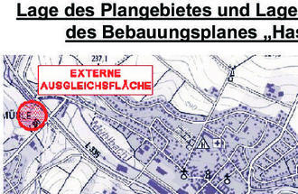 Der Bebauungsplan wurde seinerzeit im zweistufigen Regelverfahren mit Umweltbericht und zusammenfassender Erklärung nach § 10 Abs. 4 BauGB aufgestellt. Die Lage der für den Eingriff in Grund und Boden erforderlichen externen Ausgleichsflächen kann der beigefügten Übersicht entnommen werden (unmaßstäblich). Die Genehmigung des Bebauungsplanes nach § 10 Abs. 2 BauGB ist nicht erforderlich, da die 13. Änderung des Flächennutzungsplanes der Verbandsgemeinde Nastätten zwischenzeitlich mit öffentlicher Bekanntmachung vom 14.11.2019 in Kraft getreten ist und für den Geltungsbereich des Bebauungsplanes „Hasenläufer“ eine Wohnbaufläche darstellt.