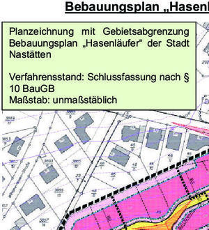 Der Stadtrat der Stadt Nastätten hat in seiner öffentlichen Sitzung am 17.11.2015 den Bebauungsplan „Hasenläufer“ in der Fassung vom 16.11.2015 mit der Planzeichnung und den textlichen Festsetzungen gemäß § 10 Abs. 1 Baugesetzbuch (BauGB) als Satzung beschlossen und die dazugehörige Begründung samt Anlagen gebilligt.