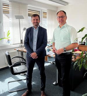 Benedikt Bauch und Bürgermeister Jens Güllering tauschen sich aus