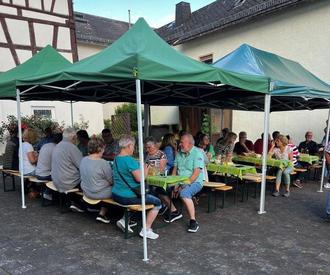 Zurück in Buch, war der dortige Backes bereits angeheizt. Nach Lust und Laune konnte dann Pizza belegt und gebacken werden. Auf dem liebevoll gestalteten Rathausvorplatz gab es bei kühlen Getränken ausreichend Zeit zum Rück- und Ausblick.