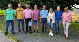 von links: Jörg Rausch, Stefan Kring, Klaus Brand, Gerd Heymann, Holger Heymann, Sabrina Winterwerber, Nils Heymann, Bürgermeister Jens Güllering