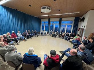 Blaues Ländchen. Bürgermeister Jens Güllering ist mit den bisherigen Dorfgesprächen im Blauen Ländchen sehr zufrieden. Seit September 2023 ist der Bürgermeister unterwegs und lädt gemeinsam mit den jeweiligen Bürgermeistern zu den Info-Gesprächen ein. „Zwischenzeitlich war ich in 25 Gemeinden und habe dabei über 600 Menschen getroffen“, so der Bürgermeister. Bei den Dorfgesprächen steht der Informationsaustausch im Vordergrund. Dabei hat der Chef der Nastätter Verbandsgemeindeverwaltung immer die Themen „Breitbandausbau“ und „Neues Beitragssystem der Verbandsgemeinde-Werke“ im Gepäck. Aber auch ganz viele andere Themen wurden besprochen. So war ab Februar bei jedem Termin auch die Situation des Gemeinschaftsklinikums Gegenstand der zahlreichen Fragen. Denn genau um diese Fragen aus dem Kreise der Teilnehmer geht es dem Bürgermeister. „Die Treffen sollen ein lockerer Austausch sein und den Menschen die Antworten auf ihre Fragen bringen“, so erläutert Güllering das Konzept.