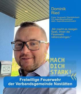 Dominik ist nicht nur aktives Mitglied der Freiwilligen Feuerwehr Obertiefenbach, sondern auch als VG-Jugendfeuerwehrwart und stellvertretender Jugendfeuerwehrwart von Obertiefenbach in der gesamten Verbandsgemeinde unterwegs.