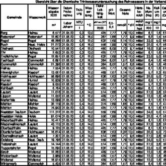 Die Verbandsgemeindewerke Nastätten bitten um Beachtung der Übersicht über die Untersuchungsergebnisse der vom Mittelrheinlabor im Mai/Juni 2023 erstellten chemischen Analysen des Trinkwassers in der Verbandsgemeinde Nastätten nach der Trinkwasserverordnung.