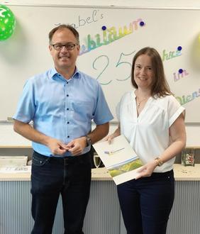 Nastätten, August 2025 – Isabel Schönbein blickt auf 25 Jahre engagierte Arbeit im Dienst der Verbandsgemeinde Nastätten zurück. Ihr gesamtes Berufsleben hat sie unserer Verwaltung gewidmet, nachdem sie in 2003 ihre Ausbildung zur Verwaltungsfachangestellten in unserem Haus abgeschlossen hat.