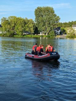 Am gestrigen Freitag fuhren wir mit unserem Rettungsboot nach Koblenz an die Mosel. Während das Boot zu Wasser gelassen wurde, gab es erst mal eine kurze Einweisung in Sachen Verhalten an Bord und die Funktion von Rettungswesten.