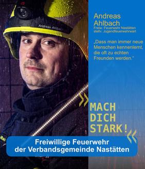 Andreas ist ein echter Feuerwehrmann mit Herz - und jemand, der sein Wissen gerne weitergibt. Seit 2016 ist er aktiv dabei, zunächst in der Einheit Pohl, seit 2019 in Nastätten. Bereits nach seiner ersten Übung war für ihn klar: „Das ist genau mein Ding!“