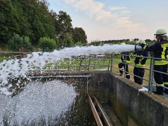 Die Übung diente der Ausbildung und dem Training im Umgang mit dem Löschmittel Schaum.