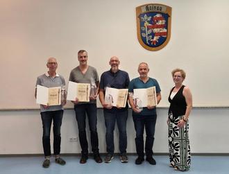 Verabschiedete Ratsmitglieder und Alt-Bürgermeister: Von links: Joachim Weber, Markus Breithaupt, Carsten Schmidt, Markus Klotz, Nadine Bärz