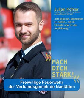 Julian steht für Motivation, Verlässlichkeit und Teamgeist - Eigenschaften, die er in Feuerwehr, Beruf und Alltag gleichermaßen lebt.