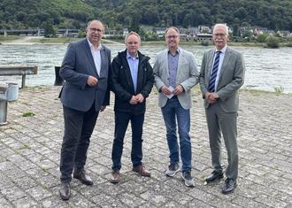 Bildunterschrift: v. l.: Regionalgeschäftsführer der Industrie- und Handelskammer für den Rhein-Lahn-Kreis Richard Hover, Bürgermeister der Verbandsgemeinde Loreley Mike Weiland, Bürgermeister der Verbandsgemeinde Nastätten Jens Güllering und Hauptgeschäftsführer der Industrie- und Handelskammer Koblenz Arne Rössel