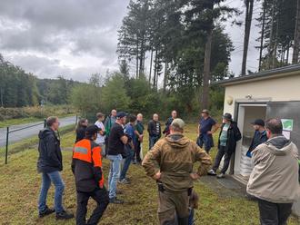 Im Rahmen der Öffentlichkeitsarbeit veranstalteten die Verbandsgemeindewerke Nastätten in Verbindung mit dem Forstrevier Miehlen am Sonntag, 21.09.2025 eine Wald-Wasser-Wanderung. Trotz ungemütlicher Witterung fanden sich an diesem Tag einige Interessierte auf dem Schulhof der Mühlbachschule Miehlen ein. Nach kurzer Begrüßung durch Bürgermeister Jens Güllering und den technischen Werkleiter Ralf Solinski setzte sich die Gruppe, angeführt durch Revierförster Daniel Wölfle, in Bewegung. Im Wald wurde an mehreren Stationen Halt gemacht. Herr Wölfle berichtete über die aktuelle Waldsituation. Am Hochbehälter, der Pumpstation sowie am Brunnen II in Miehlen erklärten die Mitarbeiter der Wasserwerke Hintergründe zur Funktion und informierten über das komplexe Themenfeld „Trinkwasser“ mit seiner Herkunft bis zum Wasserhahn. Insgesamt wurde die Verbindung zwischen dem Wald und der Trinkwassergewinnung verdeutlicht. Gesammelte Spenden kommen der Unterstützung des heimischen Waldes zugute.