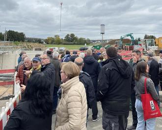 Im Rahmen der Öffentlichkeitsarbeit veranstalteten die Verbandsgemeindewerke Nastätten am Mittwoch, 15.10.2025 um 15.00 Uhr eine öffentliche Baustellenbesichtigung auf der Kläranlage Niederwallmenach. Aufgrund des Alters der Kläranlage und der stärkeren hydraulischen Belastung, sowohl durch die Produktionserweiterung einer ortsansässigen Firma als auch die Zunahme der kommunalen Schmutzwassermenge, ist eine Erweiterung der Kapazität sowie Ertüchtigung der Kläranlage erforderlich. Auf dem Gelände der Kläranlage fanden sich an diesem Nachmittag etwa 60 interessierte Bürgerinnen und Bürger ein. Nach kurzer Begrüßung durch Bürgermeister Jens Güllering und den Abwassermeister Sascha Velte ergriff auch der Vorstandsvorsitzende der bauausführenden Firma Bauunternehmung Albert Weil KG, Herr Klaus Rohletter, das Wort: „Wir freuen uns sehr, mit dem heutigen Tag einen weiteren Meilenstein der Bauphase zu zelebrieren.
