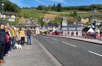 Weiter ging es nach Obernhof, wo die Ortsbürgermeister Friedrich Merz (Obernhof) und Christoph Lindscheid (Weinähr) die Projekte Bürgerweinberge in Obernhof und Weinähr sowie den Lahn-Wein-Stieg vorstellten. Der Lahn-Wein-Stieg verbindet die beiden Ortsgemeinden und hält viele Attraktionen sowie wunderschöne Ausblicke bereit. Den Erfolg des Wanderweges zeigt die wachsende Anzahl an Besuchern: „Es sind viele und deutlich mehr als vorher…“ so Friedrich Merz, der die Gäste insbesondere am Wochenende durch die Weinberge wandern sieht. Unterhalb der Lahnbrücke stellte Friedrich Merz das Projekt Schaffung von Bootsanlegern mit Elektrosäulen vor, in dem sieben Bootsanleger mit 14 Steckdosen unter anderem für die zunehmende Anzahl an Hausbooten, aber auch andere Boote auf der Lahn geschaffen wurden. Nach einer Mittagspause ging es weiter in die Gemeinde Balduinstein. Zunächst informierte sich die LAG über den Premiumwanderweg Küppeltour, welcher seinen Start- und Zielpunkt in Balduinstein hat. Sabine Ksoll, Regionaltourismus VG Diez, erläuterte, wie der abwechslungsreiche Wanderweg mit Hilfe einer LEADER-Förderung und in Trägerschaft der Verbandsgemeinde Diez umgesetzt wurde. Seit Bestehen der Küppeltour hat die Anzahl an Wanderern in Balduinstein stark zugenommen, berichtete die Ortsbürgermeisterin Marie-Theres Schmidt. Begeistert vom LEADER-Gedanken setzte die Ortsgemeinde Balduinstein zwei weitere LEADER-Projekte in Eigenregie um. Der Multifunktionsraum als Gemeindebedarfs- und Begegnungsstätte hatte die Umgestaltung des einstigen Sitzungsraums der Ortsgemeinde im Rathaus zum Ziel. Der Ortsgemeinde war es ein Anliegen, einen Raum zu schaffen, der allen Bürgerinnen und Bürgern zur