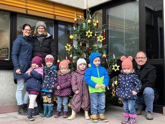 Auf Einladung des Bürgermeisters wurde der Baum in diesem Jahr von den Kindern der katholischen Kindertagesstätte St. Peter und Paul gestaltet. Gemeinsam mit ihren Erzieherinnen besuchten die Kinder die Verwaltung und wurden dort von Bürgermeister Jens Güllering herzlich begrüßt. Im Gepäck hatten die Kleinen selbst gebastelten Baumschmuck, der eigenhändig an der Tanne angebracht wurde.