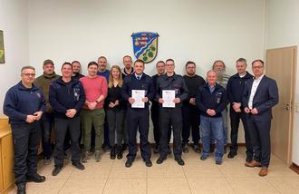 Lukas Henning und Benedikt Fischer sind am 10.01.2024 einstimmig zur neuen Wehrführung der Freiwilligen Feuerwehr Rettershain gewählt und durch Bürgermeister Güllering ernannt worden. Beide erhielten den vollen Rückhalt der aktiven Mitglieder der Rettershainer Wehr. Zu den Gratulanten zählen Ortsbürgermeister Uwe Jannaschk, Bürgermeister Güllering, sowie die Wehrleitung mit Stephan Allmeroth und Alexander Schäfer.