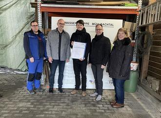 v.l. Herr Velte (Abwassermeister), Herr Solinski (Techn. Werkleiter), Herr Blech (Geschäftsführer DWA), Herr Güllering (Bürgermeister), Frau Michel (TSM-Beauftragte)