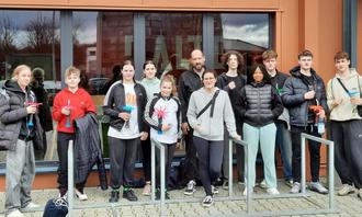 Abgesehen von einigen kleinen Trinkpausen waren wir ständig auf den Aktionsflächen unterwegs, spielten Airsoccer, versuchten uns beim Slam Dunk und machten sogar den ein oder anderen Salto. Es war ein anstrengender, aber sehr spaßiger Ausflug! Sichtlich erschöpft gönnten wir uns vor Ort noch eine kleine Stärkung, bevor es dann gemeinsam wieder zurück nach Braubach ging.