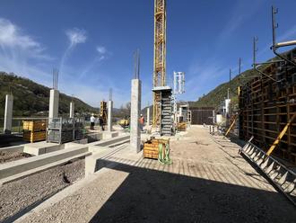 An der Wellmicher Straße in St. Goarshausen geht`s bei dem trockenen Wetter derzeit gut voran: In der zurückliegenden Woche wurde die Schalung für die künftige Bodenplatte des Erdgeschosses auf die bereits vorhandenen Stützen im durchflutbaren Untergeschoss aufgebracht. Das Untergeschoss wird nach Fertigstellung zahlreiche Parkplätze für die Mitarbeitenden der Verbandsgemeindeverwaltung bieten, was sich an der zwar aufwendigen hochwasserangepassten Bauweise jedoch an dieser Stelle zum Nutzen erweist.