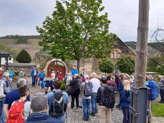 Im Rahmen des diesjährigen Wandertags rund um den Langhalsweg konnte das neuste Bürgerprojekt der Ortsgemeinde Osterspai, das #Mittelrheinherz, eröffnet werden. Über 140 Wanderfreunde nahmen an der geführten Wanderung, gestartet am Langhalsbrunnen, teil. Darunter auch die Loreley Katharina, Mittelrhein-Weinkönigin Verena, Mittelrhein-Weinprinz Gero und Martinimarktkönigin Lara.