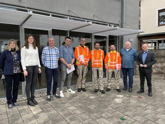 V.l.n.r. Frau Ursula Sexter, Frau Rebecca Puggé, Fachbereichsleiter II Herr Gerd Schuster, Herr David Schönfeld, Herr Stefan Rindsfüsser, Herr Steffen Wulf, Herr Klaus Schwan, Werkleiter Herr Michael Krämer und Bürgermeister Herr Mike Weiland