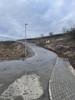 Die neue Erschließungsstraße trägt nach der alten Gemarkungsbezeichnung den Namen „Hühnerberg“. Die ausführende Firma wird den Bereich nun zeitnah räumen und die Baugeräte auf anderen Baustellen einsetzen.
