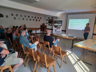 Über 20 interessierte Bürgerinnen und Bürger fanden sich für das Zukunftsgespräch in Reitzenhain ein. Nach der Begrüßung durch Bürgermeister Mike Weiland, der auch die Klimaschutzmanagerin des Rhein-Lahn-Kreises Jasmin Lemler unter den Anwesenden begrüßen konnte, stellte Klimaschutzmanager Ingmar Blonzen anhand einer Bildschirmpräsentation das Klimaschutzkonzept vor. Das Klimaschutzkonzept soll als strategische Entscheidungsgrundlage und Planungshilfe für die Reduktion von Treibhausgasen dienen und enthält eine Bestandsaufnahme der Treibhausgas-Emissionen in der Verbandsgemeinde Loreley als auch einen Maßnahmenkatalog, wie diese verringert werden können. Das Konzept enthält Daten zu drei Bereichen: Gebäude, Mobilität und Beschaffung. Die Ergebnisse zeigen, dass im Jahr 2019 die Treibhausgas-Emissionen rund 158.072 t Treibhausgase betrugen. Der größte Anteil hiervon, entfällt auf den Verkehr gefolgt von den privaten Haushalten, Industrie, Gewerbe, Handel und Dienstleistungen sowie den kommunalen Einrichtungen. Die Berechneten Klimaschutzszenarien zeigen, dass bei optimaler Umsetzung in der gesamten Verbandsgemeinde Loreley bis zum Jahr 2045 die Treibhausgase um bis zu 88 % reduziert werden könnten. Dies hängt allerdings von verschiedenen Faktoren ab, die nicht immer von der Verbandsgemeinde Loreley beeinflusst werden können. Es zeigt sich aber auch, dass neben den großen und umfangreichen Maßnahmen auch viele kleinere Maßnahmen, bei denen sich so ziemlich jeder einbringen kann, einen wesentlichen Beitrag zur Verbesserung des Klima- und Artenschutzes leisten können. „Wir müssen uns in dem Bereich breit aufstellen und dementsprechend viele Menschen und Institutionen einbinden. Ein Beispiel dafür ist die Aktion ‚Kleine Bienenretter“, bei der wir Samentütchen und Kinderbücher an die Kindergärten in der Verbandsgemeinde Loreley verteilt haben. Auch die Aktion ‚Grüne Verbandsgemeinde Loreley‘ hat dazu beigetragen, dass die Menschen den Arten- und Klimaschutz vor der eigenen Haustür bewusster wahrnehmen und dementsprechend bewusster handeln“, sind sich Bürgermeister Mike Weiland und Klimaschutzmanager Ingmar Blonzen einig.