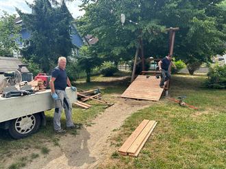An vielen Stellen im Ort wird derzeit gearbeitet. So ist neben den Großbaustellen Mutlifunktionsplatz und Glasfaserausbau der Bauhof auf dem Spielplatz aktiv. Dort konnte vergangene Woche bereits die in die Jahre gekommene Startrampe der Seilbahn neu gebaut werden. In den kommenden Tagen werden zudem am großen Spielturm Podeste ausgetauscht.