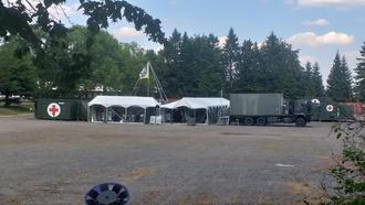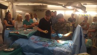 Am vergangenen Sonntag nutzten viele St. Goarshäuser Bürgerinnen und Bürger die Einladung unserer Patenkompanie der Bundeswehr, das dort vorgehaltene verlegefähige Rettungszentrum zu besichtigen. Ein Bundeswehr-Bus brachte uns von der Loreleystadt aus auf den ehem. Truppenübungsplatz Daaden. Dort bekamen wir zunächst Führungen in die verschiedenen Bereiche des Rettungszentrums (Triage, Schockraum, OP, Pflegestation, Intensivstation) und konnten auch selbst Geräte ausprobieren (im Bild: Das veröden einer Blutung mit einer Elektro-Pinzette).