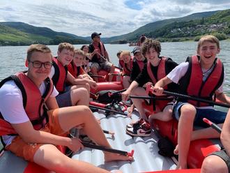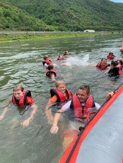 Am Sonntag, dem 26. Juni, fand unsere Mittelrhein-Rafting Tour statt. Die 14 km lange, geführte Rafting Tour „Höllenberg“ von Assmannshausen nach Kaub startete bei Sonnenschein unterhalb der berühmten Rotweinsteillage „Höllenberg“ gegenüber dem Schloss Rheinstein. Vom Höllenberg aus ging es vorbei an Burg Reichenstein und Sonneck mit einer einzigartigen Aussicht bis nach Bacharach und Burg Stahleck. Danach ließen wir die schöne Stadt Lorch hinter uns und paddelten weiter bis nach Kaub. Dort wartete schon ein weiteres Highlight aus dem Rheintal auf uns, die Burg Pfalz Grafenstein mit einer Schwimmpause im alten Kauber Fahrwasser für alle Wasserratten. Alle TeilnehmerInnen hatten sehr viel Spaß. Wir bedanken uns bei unseren Guides Sven und Charly für die gelungene Tour! Wir kommen wieder!